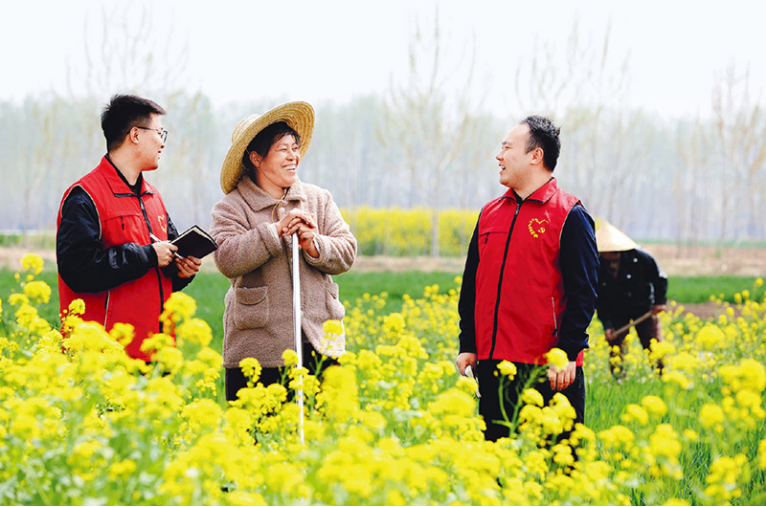 建设成果切实转化为为民服务的实际成效。图为2025年4月8日,山东省临沂市郯城县党员志愿者在田间了解春季农业生产及乡村产业发展情况。