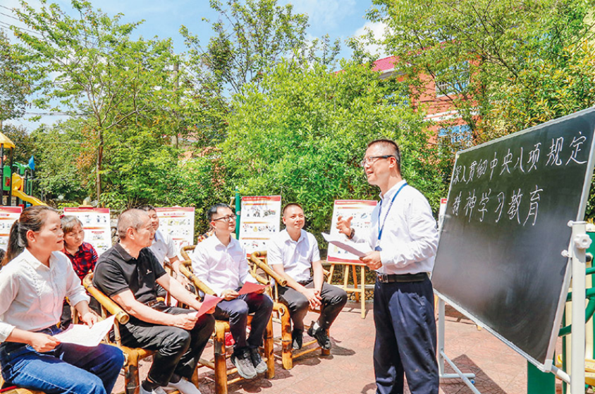村,当地干部为党员群众细致解读中央八项规定精神内涵及实践要求。