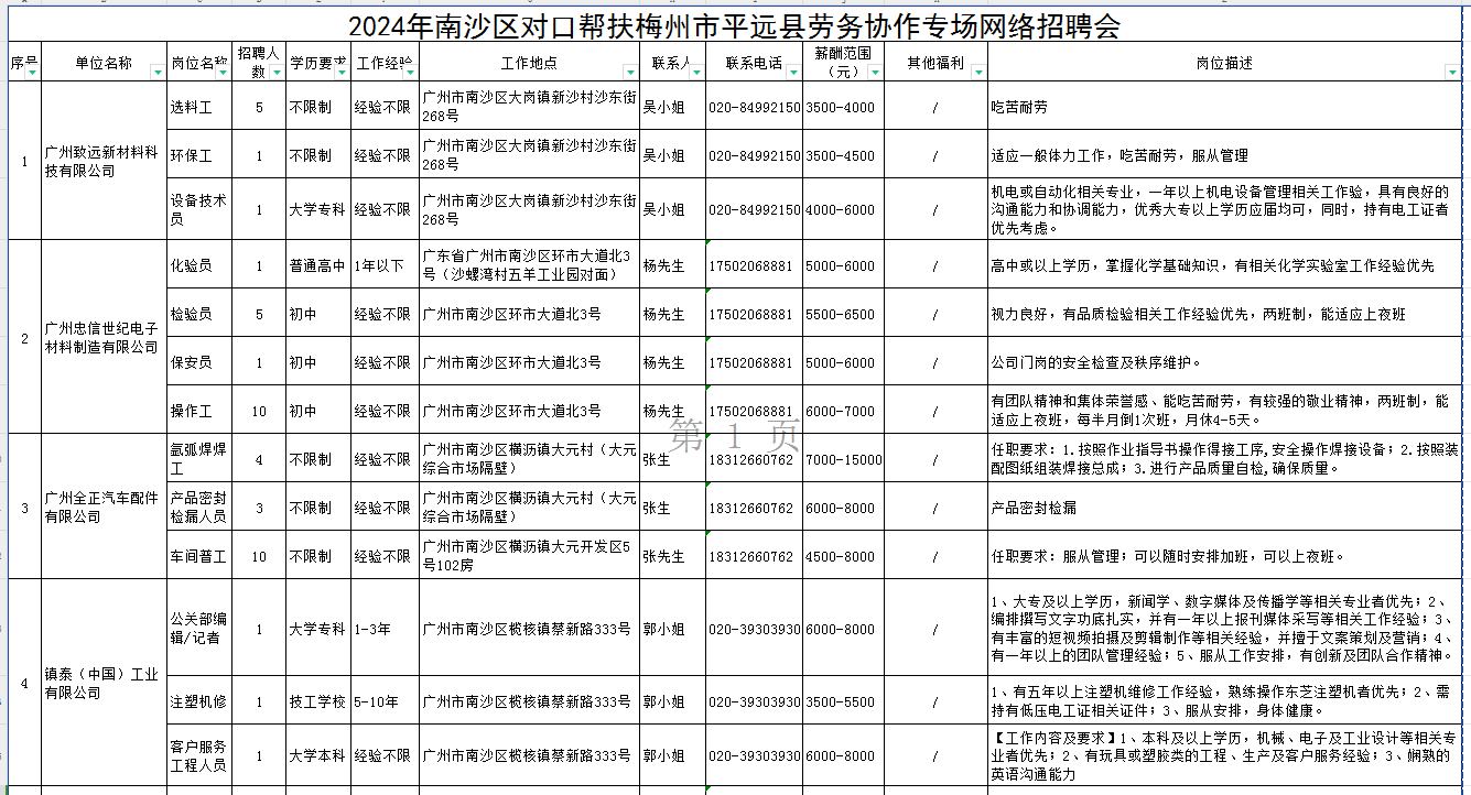 2024年南沙区对口帮扶梅州市平远县劳务协作专场网络招聘会