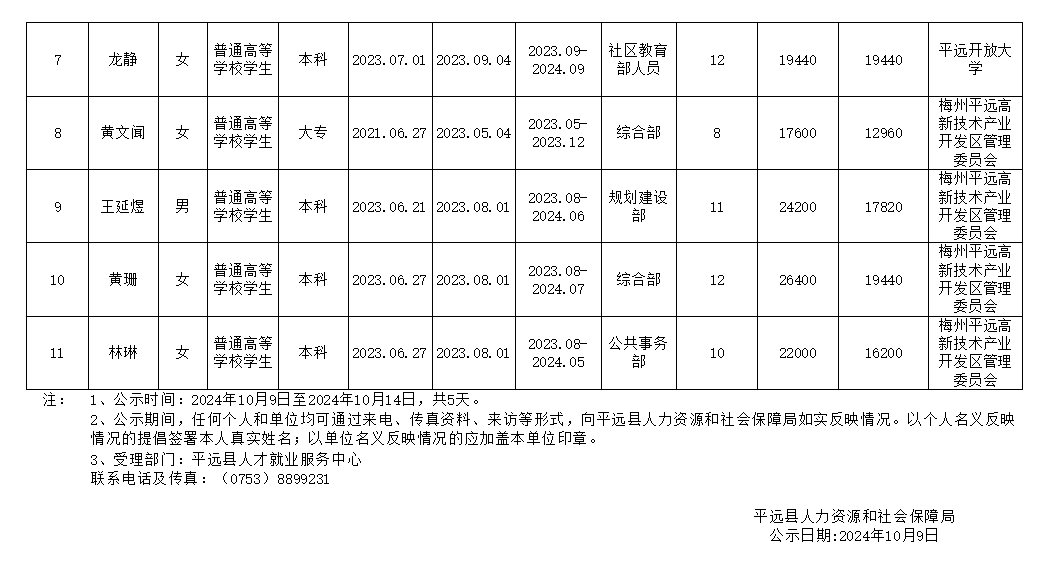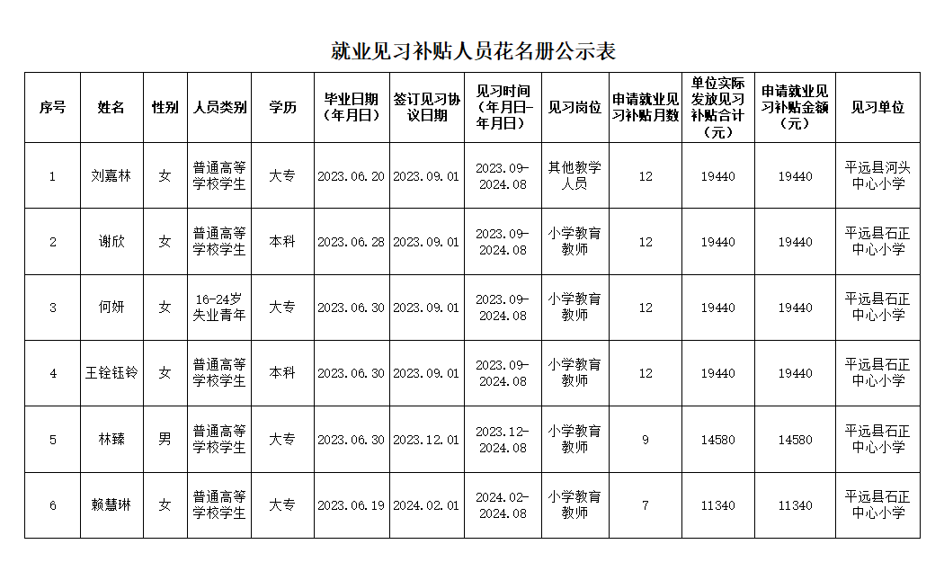 就业见习补贴人员花名册公示表
