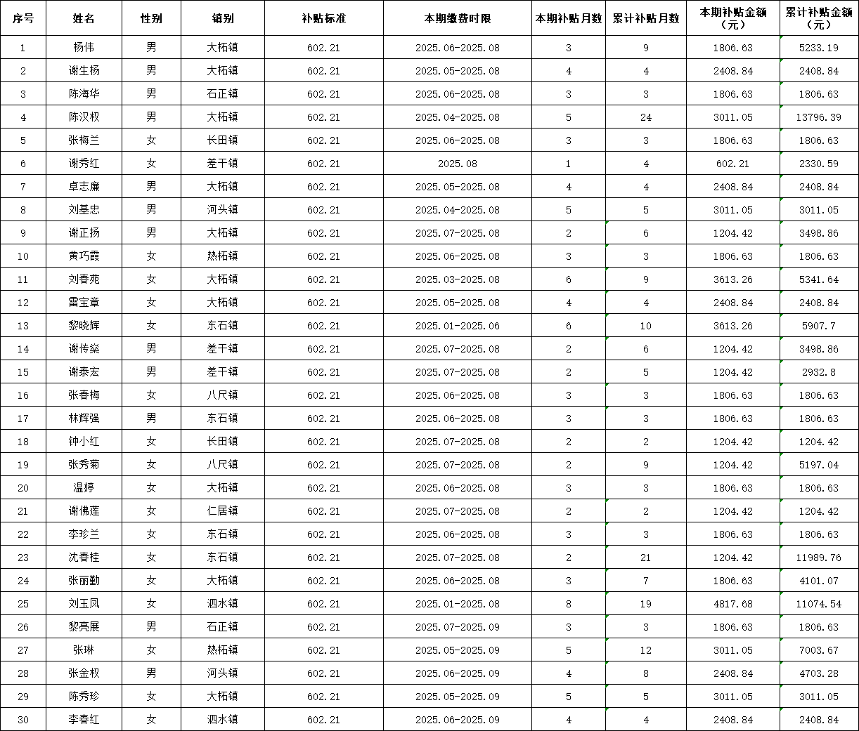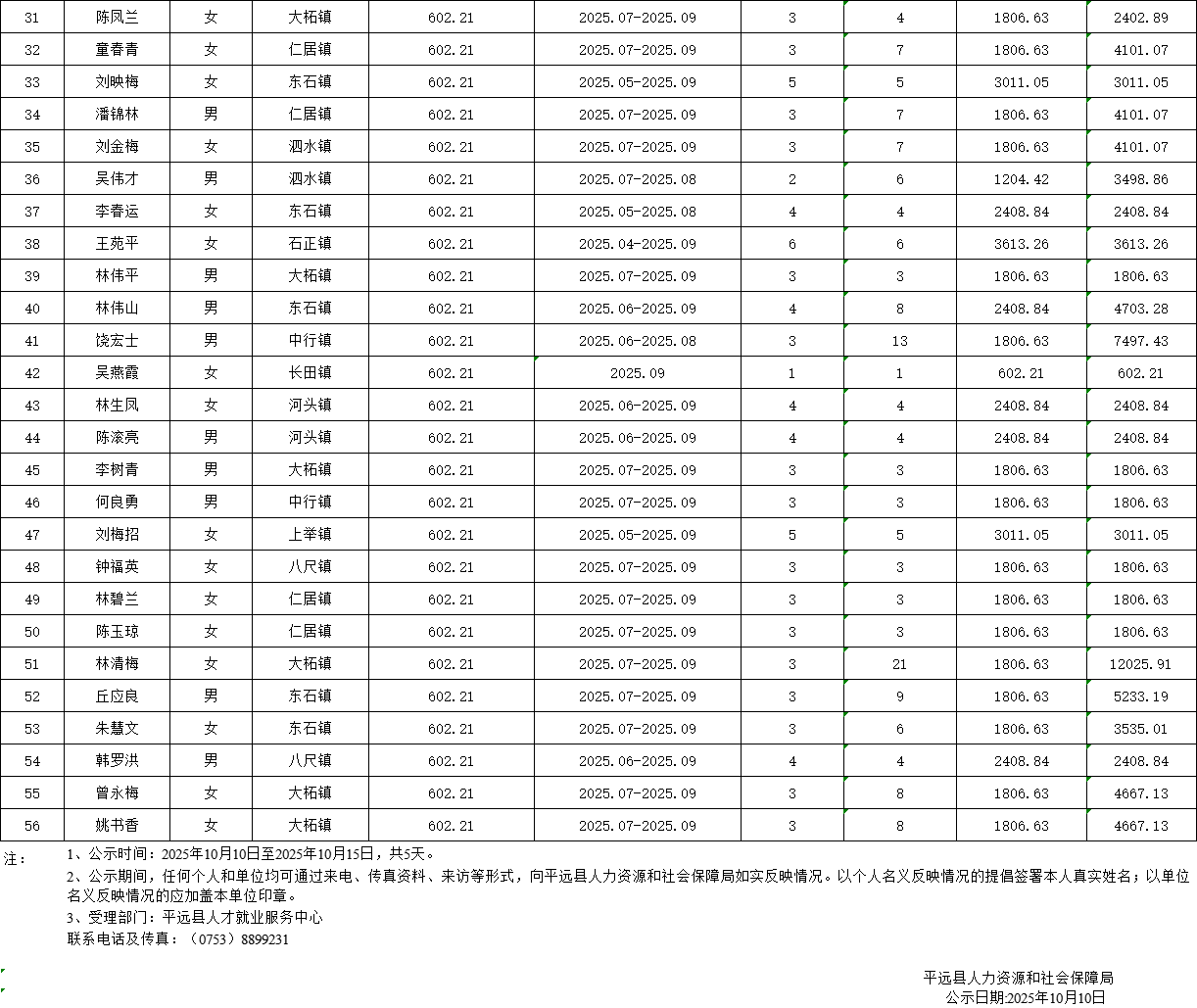 平远县就业困难人员灵活就业申请社会保险补贴花名册公示表
