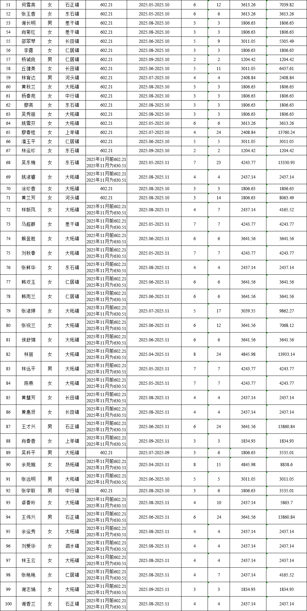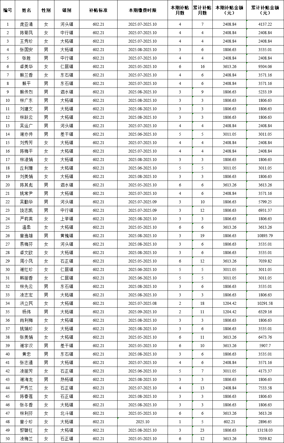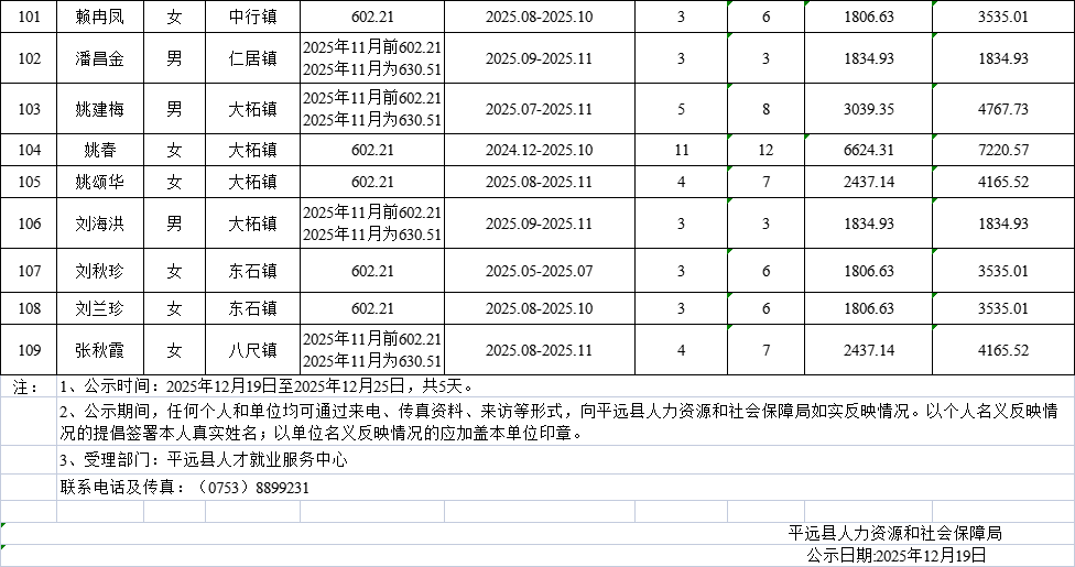 平远县就业困难人员灵活就业申请社会保险补贴花名册公示表