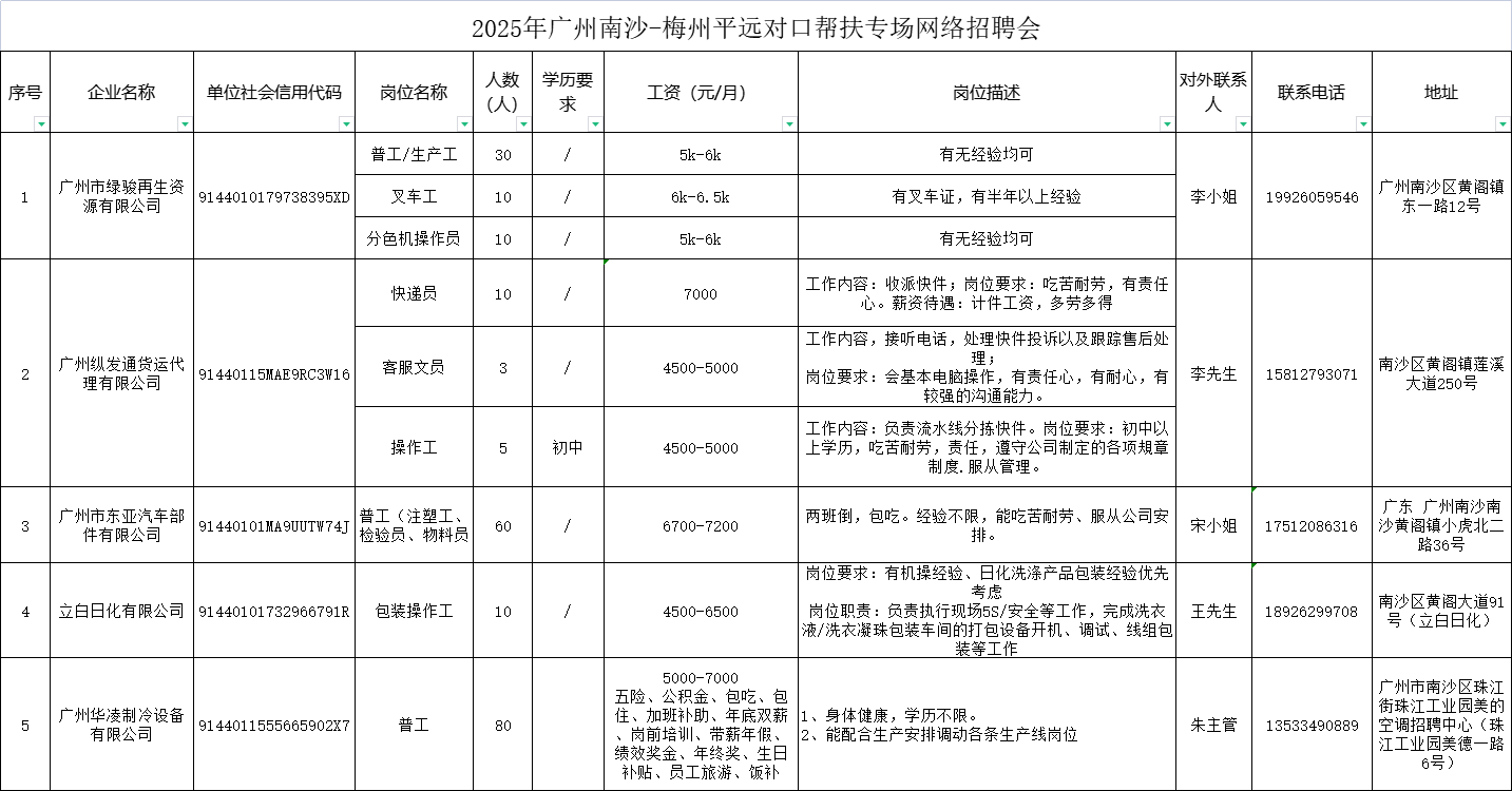 2025年广州南沙-梅州平远对口帮扶专场网络招聘会