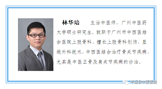 林华培主治中医师,广州中医药大学硕士研究生。就职于广州市中西医结合医院上肢骨科,擅长上肢骨科创伤,显微外科技术,中西医结合治疗骨关节疾病,尤其是中医正骨及肩关节疾病的诊治。